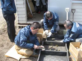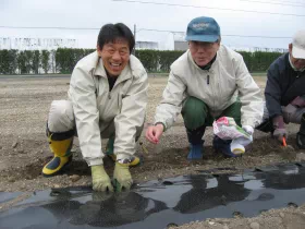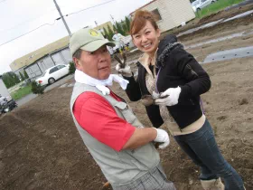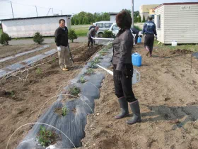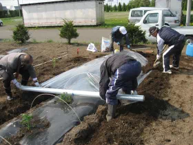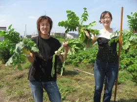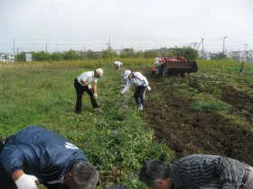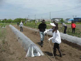 2012年10月19日、宮城県岩沼市の玉浦中学校に収穫物を贈呈し、同校の運動会でPTAの皆様に調理していただき、生徒に提供されました。