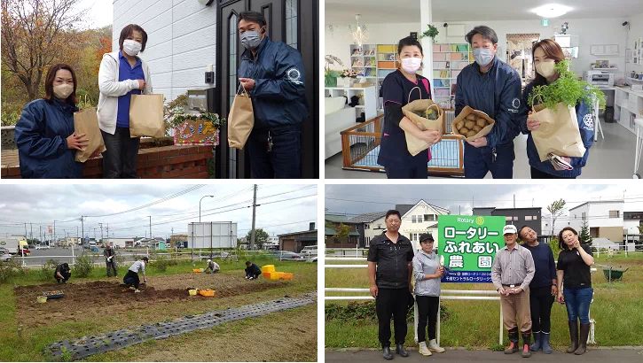 2018-2019年度、菅原百合子会長の年度に本事業を再開して以来3年目、今年度も引き続き「ロータリーふれあい農園」を実施しました。コロナ禍の影響で、限られた人数での農園作業になりましたが、今回も収穫物を、千歳市内のこども食堂にお届けすることができました。