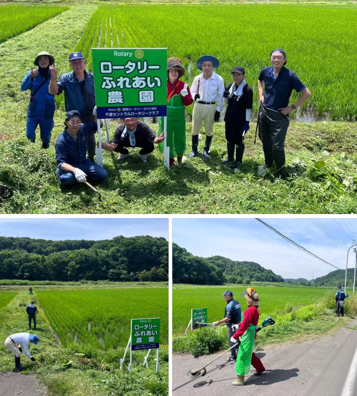 今年度の”ロータリーふれあい農園”は社会奉仕委員会の橋場委員長が営む農場の田んぼをお借りし、米作りに挑戦します。市内のこども食堂に今年度は「米」をお届けします