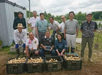 今井実行委員長「収穫するジャガイモととうきびを創立20周年の祝賀会に利用しようと検討中です。また収穫祭では、つくし保育園の子供達と一緒に取り入れをと計画を立てています。ご協力ください!」