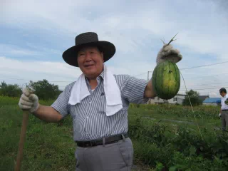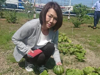 園児に食べてもらう小玉スイカを収穫する