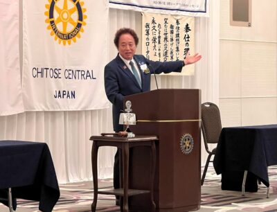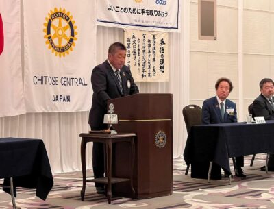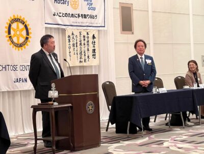 今日の夜間例会はRI第2510地区玉井清治ガバナー(函館亀田RC)と橘功記ガバナー補佐(北広島RC)をお迎えしての「ガバナー公式訪問」でした。