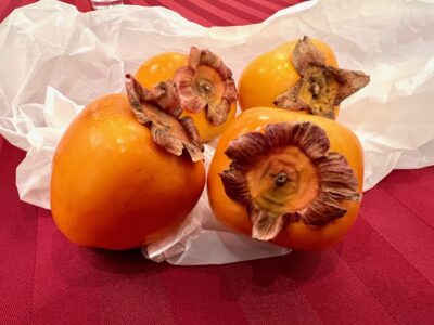 ご当地特産の四ツ溝柿が送られてきて、会員皆に配られました。