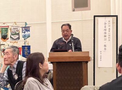 担当は理事会で南雲勇次会長から会員増強に対する考えや今後の進め方についてのお話かあり、会員にアンケート調査を行いました。
