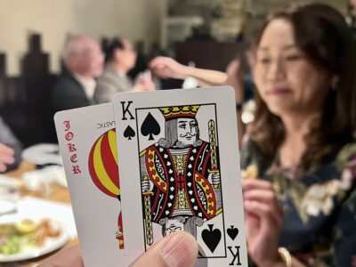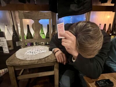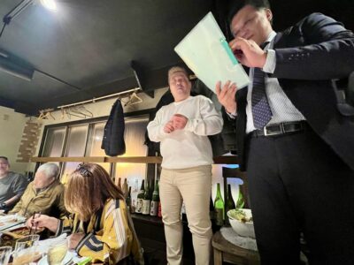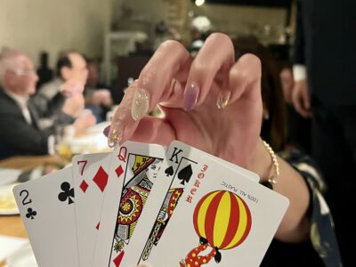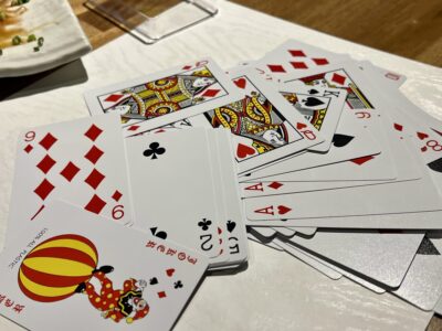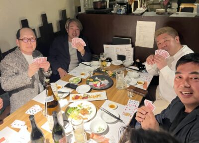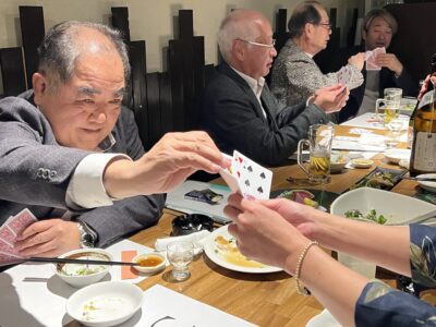 移動親睦夜間例会として、創作和食居酒屋あまがえるで皆で美味しい食事をいただきながら参加者全員でトランプのババ抜きを行いました。
