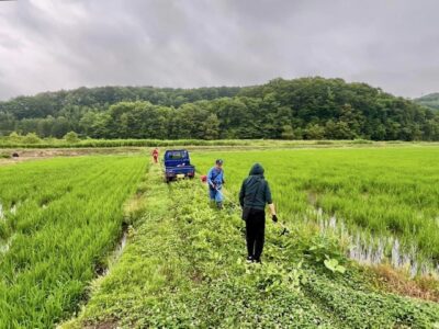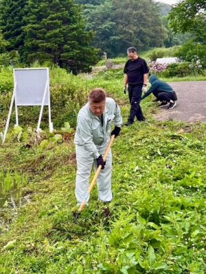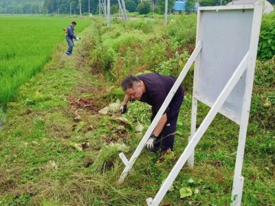 今日は田んぼの周辺の草刈りを行いました。