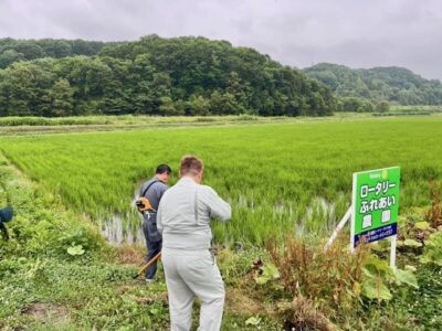 千歳セントラルロータリークラブでは、メンバーの橋場農場さんの敷地の一部をお借りしている「ロータリーふれあい農園」で稲作を行っています。
