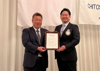 スタート早々2名の新たな仲間が加わりました。 三井住友海上エイジェンシー・サービス株式会社千歳支店長の田宮大輔さんと(有)さいとうグループ ヘアーポイントすみれ代表取締役の斉藤創さんです。
