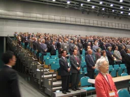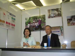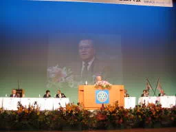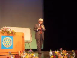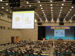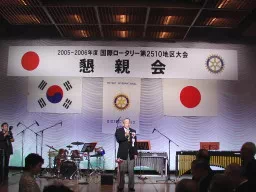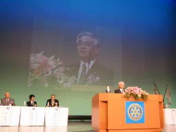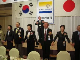 われら田口会員! 世界社会奉仕委員会のブースにて真面目な面持ち?!