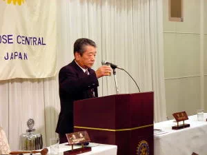 多賀パスト会長の挨拶を聞き入る お客様と会員の面々