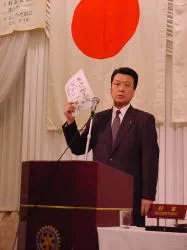 今例会は、ご多忙な時間を割いていただき、千歳市 山口幸太郎市長をお迎えして、卓話をお願いしました。市長自ら資料を持参し、財政難の状況説明と市長就任以来実施した財政建直策、その対策の効果と実績を説明されました。限られた卓話時間が残念でしたが、次回は、増収の具体的な政策をお伺いしたいものです。制限時間ギリギリまで熱心に卓話して戴きました。ありがとうございました!