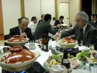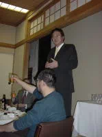 長手親睦活動委員長のピンチヒッターで深見会員の司会の下、恒例「雪見酒」が始まりました