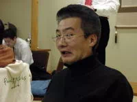 車を当て逃げされた大野会員(右)、オカンムリです!