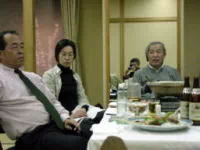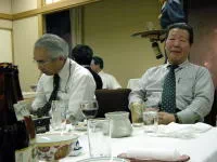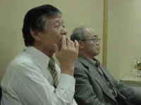 退院後、初の例会出席の長手会員(右)、奥様(中)がご同伴です