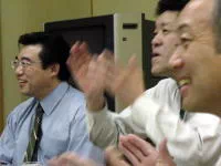 須藤会長、白木幹事、田口地区WCS委員(左から)