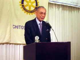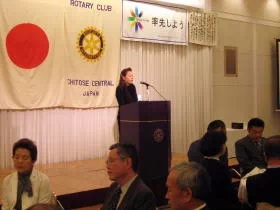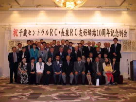 本年、友好締結10周年を迎え、友好締結時会長 石垣パスト会長、望月長泉RC会をはじめ大勢の長泉RC会員、そしてご家族の方々をお迎えし、両クラブで記念事業を開催する運びとなり、「友好締結10周年記念樹」をJR千歳駅々前広場に植樹(エゾヤマザクラ・10年木)また、「支笏湖周辺台風災害・復興の森づくり」の植林事業では、両クラブ会員が一丸となり約880本のアカエゾマツの植林作業を致しました。