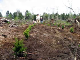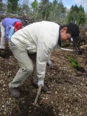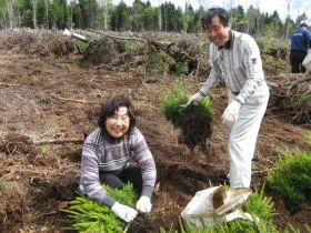 約880本のアカエゾマツの苗木を植林。次回は、根踏み、下草狩りの作業を予定しています。