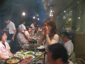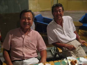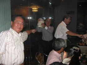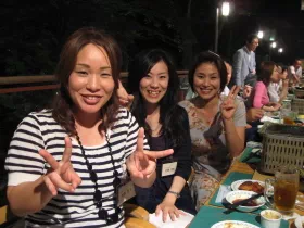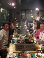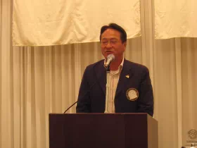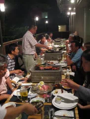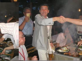 前半のセレモニーは例会場にて開催し、「100%例会出席会員表彰」「7月・誕生月会員のお祝い」「今年還暦を迎えた会員のお祝い」など。セレモニー後は、会場を屋外のテラスに移し、生ビール日和の下、以下写真の如く和気藹々、賑やかに、そして楽しく親睦の輪が広がりました。