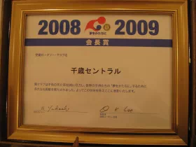 地区大会にて、「RI会長賞」(2008-2009年度)、「RI会員増強目標達成賞」(2008-2009年度)を拝受。 両賞とも2年連続の受賞となります。
