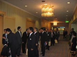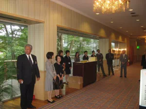 その後方で祝賀会運営担当の委員たちが忙しく・・・