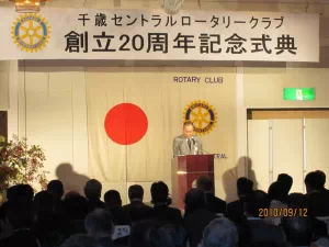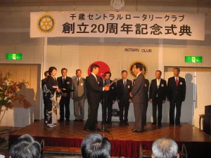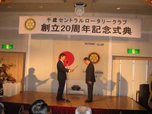千歳セントラルロータリークラブ創立20周年記念式典・祝賀会が、ホテル日航千歳を会場に開催されました。ご来賓、地区内外からロータリアンなど、大勢のお客様をお迎えし、節目の年を迎えた本クラブの門出を盛大に祝いました。