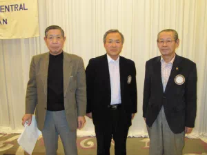 次年度理事 柏田次年度副会長、彦坂会長ノミニー、土居次年度会計(左から)