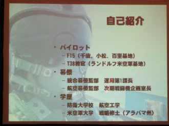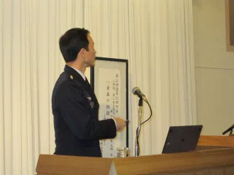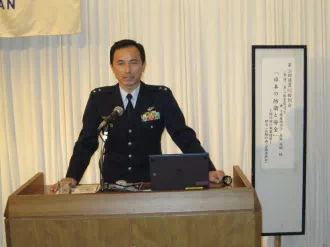 2011年1月18日 第二空団司令 武藤茂樹様(空将補)にお越し願い、国防の意図及び周辺国の軍事状況、我が国の防衛の現況を詳しくお話頂きました。
