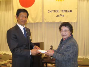 公職としまして、千歳市行政改革推進委員会副会長、千歳市廃棄物減量等推進審議会会長、市民活動としましては、千歳市市民憲章推進協議会会長、千歳市青少年育成市民会議相談役、千歳市紙パック回収事業推進連絡会会長、社団法人千歳市社会福祉協議会理事、千歳市女性団体協議会会長、さらに私たちも参加させていただいている愛キャップ市民回収運動実行委員会委員長として活躍されています。