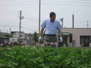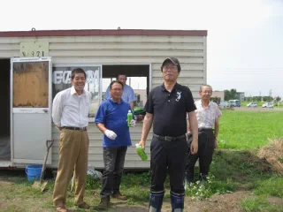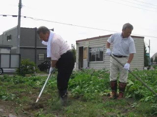 7月26日、今年度最初の移動例会は「ふれあい農園」での作業です。 「農園」は今回で3期目となります。今回もふれあい実行副委員長の清水清光会員の全面的なサポートで耕作が開始されています。当日は気温が28℃に達する夏空の下での作業となりました。好天が続き雑草が伸び放題でしたが、草刈り作業も3期目となる会員等は1時間程で作業終了です。 今年もつくし保育園の児童と一緒に収穫祭を行う予定です。そのためにも立派に育てなければいけません!