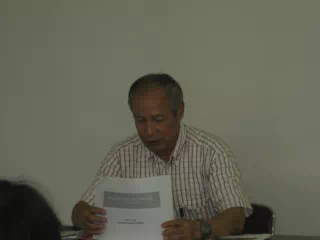 本日の例会の説明を行うふれあい農園実行委員会の高塚委員長