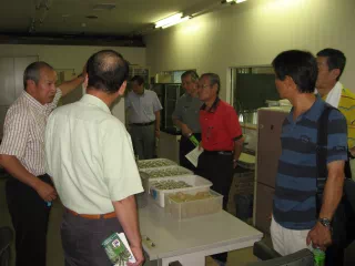 途中、⾬模様となってきたため、早めに作業を終了し、鈴⽊会員が組合長を務める「千歳市森林組合」へ企業訪問を⾏いました。森林組合の歴史や千歳の森林について資料をもとに説明して頂きました。また、組織培養技術による苗⽊なども⾒学させて頂きました。