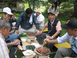 作業後は、会場を移動し恒例の「野外バーベキュー会」