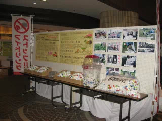 10 月15 日に千歳市⺠⽂化センターで⾏われました「環境フェア in CHITOSE」(千歳市主催)に今年も出展致しました。(通算3 回目)皆さんに集めて頂いたエコキャップの展示、回収活動と我がクラブのエコ活動の写真展示、佐々木俊哉会員の奥様に作成して頂いたエコ活動に関する説明⽂、その他アイドリングストップののぼり等を掲示を実施しました。