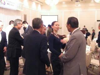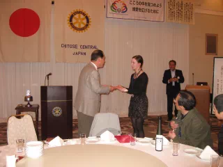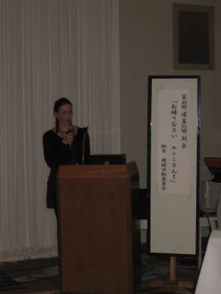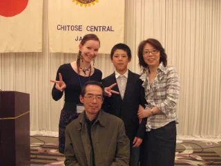エンミさんようこそ千歳に来てくれました。皆さんご存知のように4月22日、千歳に戻ったエンミを見て高校生のあどけなさが消え、大変綺麗になって大人の女性になって帰ってきたという印象を受けました。今、ANAクラウンプラザホテル千歳で実習をされています。エンミがどんな仕事をしているか、私も見に行こうと思っています。皆さんも時間がありましたら、是非見に行って頂きたいと思います。今日は、エンミが交換留学生として大変お世話になっておりました北山様、高塚様のご家族にゲストで来て頂いております。エンミとの再会をお祝い致しましょう。