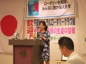 2012年3月に復興支援チャリティーイベント事業「絆で結ぶあったか♡千歳」を開催し、千歳市に避難されていた方々に県人会を通じイベント収益金をお渡しし、2013年10月には宮城県の岩沼ロータリークラブ(第2520地区)と交流を持ち、地元の玉浦中学校へクラブ自家農園で栽培した収穫物を送り絆を深めることができました。
