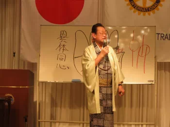 既にご紹介させて頂いておりますが、本日は深川導運先生に卓話をお願いしたいと思います。時間の関係上、深川先生のプロフィールは配布したご案内をご覧ください。では宜しくお願いします。