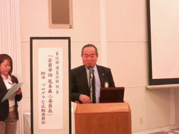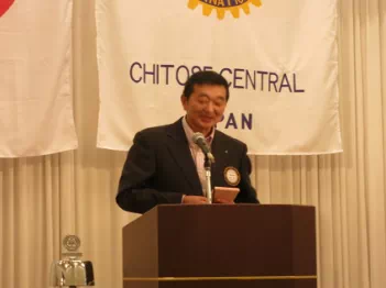 これから佐ノ山親方の現役から引退までのビデオを見てもらいますが、その前に入口会員より実行委員長と致しまして、大相撲千歳場所の開催説明と協賛、チケット購入のお願いをお話頂きたいと思いますので、宜しくお願いします。