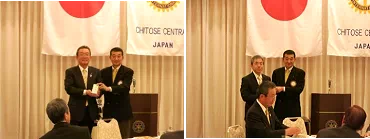 尾本会長から植田様、柏田様へ卓話のお礼として記念品を贈呈させて頂きました。