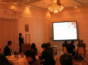 感謝を込め講師 尾本会長から今井涼様に記念品を贈呈いたしました。今井様、ありがとうございました。