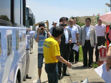 植樹祭の翌日、地元の語り部ボランティアの方々に同行頂き、時間の許す限り、岩沼市、名取市、亘理町、山元町などの今もなお震災の傷跡が癒えない場所を当時の状況を聞きながら視察、そして復興の状況、そこに暮らす方々の今の思いなど、貴重な話も伺うことが出来ました。