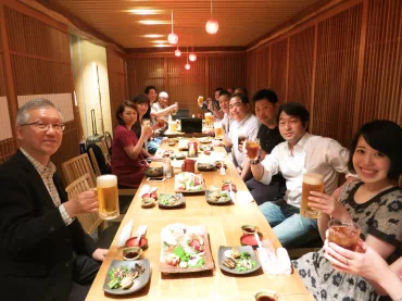 「お疲れさまでした!」 空港内の今井章夫会員が経営する『花ぶさ』にて。