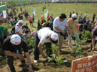 晴天のもと約12,000人が参加し10万本の苗木が植樹されました。