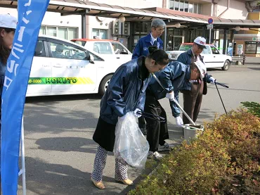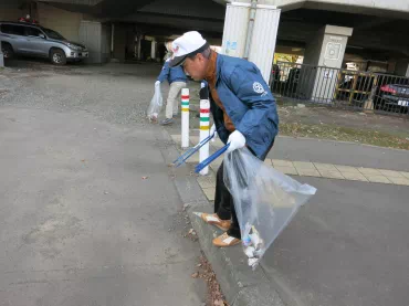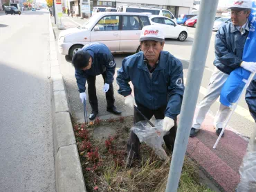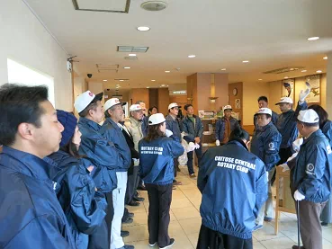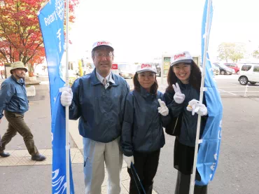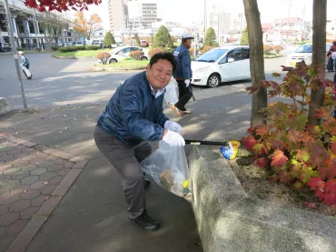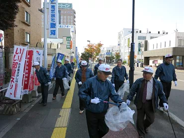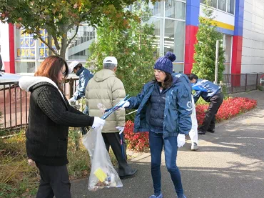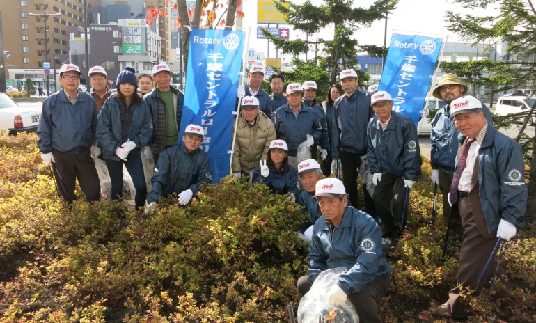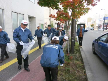 社会奉仕委員会 委員長 福島 力 今年度、第1回目の清掃奉仕です。 皆さん、今日はお集まりいただき有難うございます。これから二班に分かれて千歳駅に向かって清掃をしていただきます。最後に駅前ロータリーの桜の木の前で写真を撮りたいと思いますので宜しくお願いします。 (10月25日)