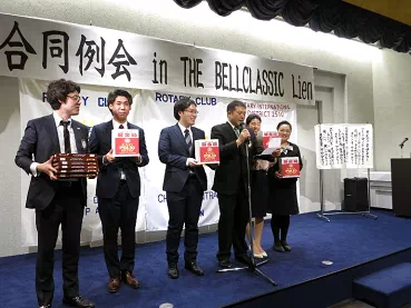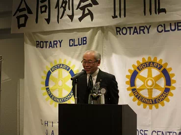 今回は皆様にお願いがありまして立たせていただいております。ポリオプラスの寄付活動ということで、ここにいらっしゃる方々に募金をお願いしたいと思います。ポリオは現在2016年度37例の発症だけとなっています。今のところ2017年度の発症は無いという事ですので、何とかこのままポリオ撲滅に向けて皆様方の清き千円札を入れていただければと思います。これから若者たちがポリオ募金箱を持って回りますので宜しくお願いいたします。