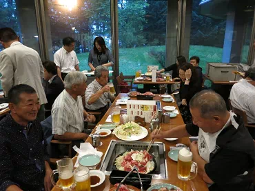 本日は、古木会員が務められる山三ふじやの事業所でりますキリンビアレストラン’ハウベ’さんを例会場にお借りして、恒例の8月の納涼例会を楽しく賑やかに開会します。