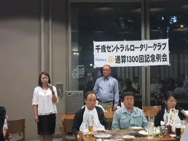 本日は1300回記念例会です。先週は19名で長泉ロータリークラブを訪問し熱烈な懇親会を開きました。これから2020年にはお互いに35周年、30周年という事で記念行事を行わなければなりません。5月と11月は寒いので時期は未定ですが、その頃にはそのような会が開かれます。僭越ながら乾杯致しましょう。