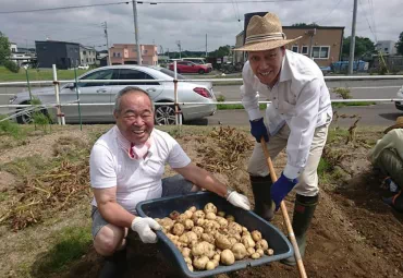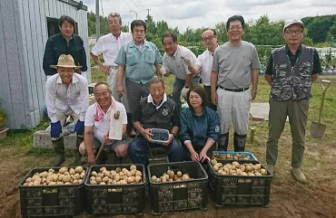 8月7日にジャガイモの収穫作業を行いました。ご案内が非常に直近になり大変慌ただしい中、多くの皆様に集まって頂き無事収穫を終えております。普段、例会場では見られないような皆さんのお姿を見る事が出来て、私自身、非常に楽しく実施出来たと思っております。