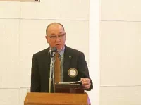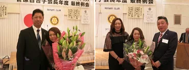 菅原会長に花束を差し上げたいと思いますが。ロータリーはそういう意味ではとても公平でいいところだと思います。菅原会長への感謝とこれからの活躍をご祈念申し上げて、お疲れ様で乾杯したいと思います。お疲れ様でした