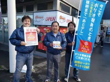 千歳ローターアクトクラブの「ポリオ募金例会」に参加し、道の駅「サーモンパーク千歳」で募金活動を実施しました。