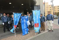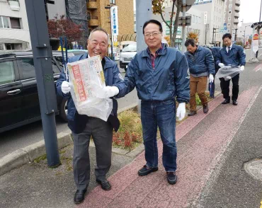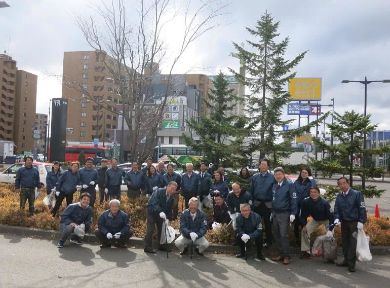 強い秋風が吹く中、千歳駅周辺の清掃奉仕活動を行いました。同時にポリオ根絶活動を周知するティッシュを配布し、広く市民に活動への理解を呼びかけました。 (2019年10月29日) 会長あいさつ 会長 髙木昌人 今日は寒空の中お集まり頂きましてありがとうございます。今日の内容は清掃奉仕です。会員自ら汗を流し手や足を使う奉仕活動…これこそがロータリーの本来の姿なんじゃないかなと思います。どうか皆さん元気よく笑顔で頑張りましょう! 宜しくお願いします。